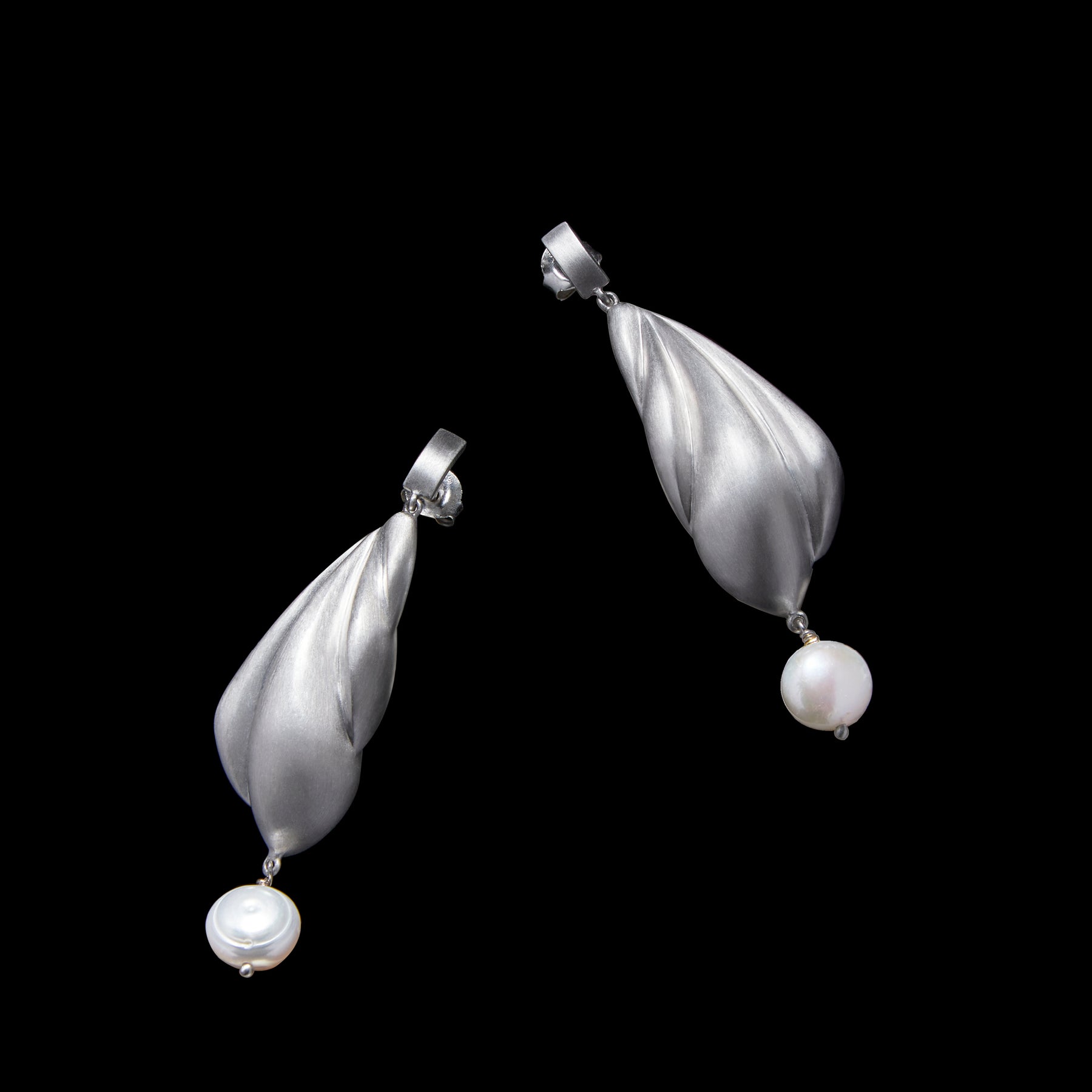 Glacier rhodium plated recycled sterling silver earrings with Freshwater Pearls.